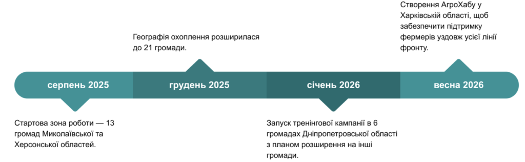 Минулого всього півроку з відкриття нашого офісу в Березнегуватому на Миколаївщині, а рух за відновлення агросектору вже набрав неймовірних обертів. Сьогодні АгроХаб – це майданчик, де фермери об’єднуються, щоб отримати знання, які на практиці допомагають заробляти та розвиватися навіть у складні часи.