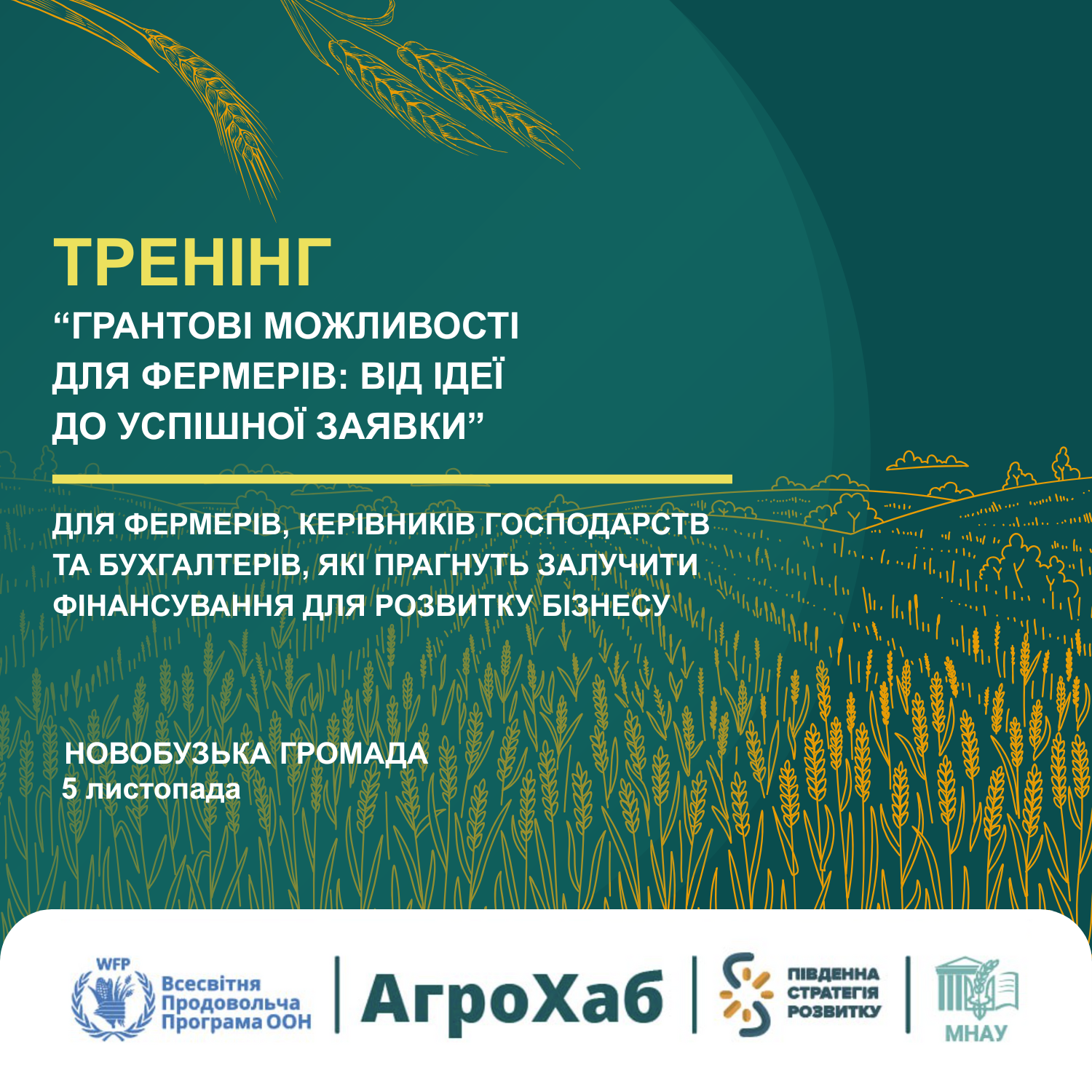 Тренінг для фермерів: Грантові можливості – від ідеї до успішної заявки (для фермерів Новобузької громади та всіх бажаючих)