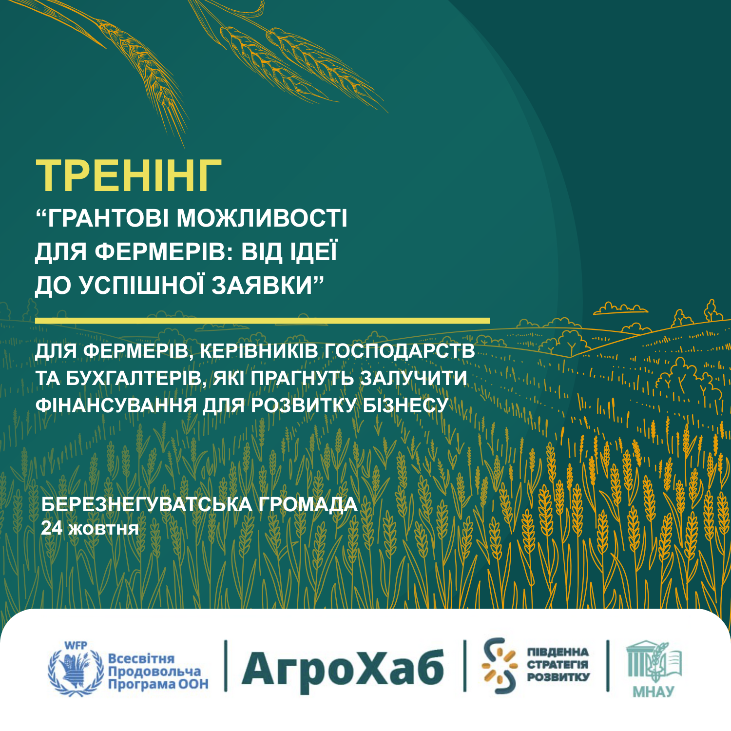 Тренінг для фермерів: Грантові можливості – від ідеї до успішної заявки (для фермерів Березнегуватської громади та всіх бажаючих)